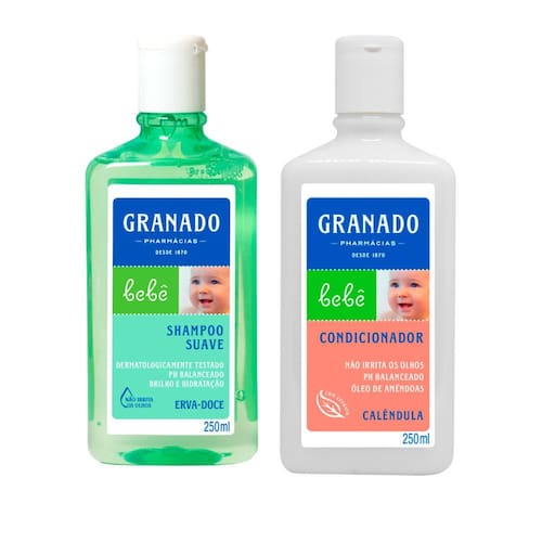 Shampoo Suave Granado Bebê Erva Doce O Shampoo Granado Bebê foi especialmente desenvolvido para limpar e perfumar os cabelos delicados do bebê, deixando-os macios e fáceis de pentear. Sua fórmula suave e sem corantes não causa irritações nos olhos do bebê. Este produto foi formulado de maneira a minimizar o possível surgimento de alergia. Produto NÃO testado em animais. Possui uma suave fragrância relaxante de lavanda. Hipoalergico Não irrita os olhos Sem corantes. Dermatologicamente testado Precauções: Manter fora do alcance das crianças. Manter em temperatura ambiente, ao abrigo da luz solar direta. Modo de usar: Aplique o Shampoo Granado Bebê nos cabelos molhados, massageando suavemente até a formação de espuma. Enxágue e repita a operação. Se necessário, para um cuidado completo, utilize em seguida o Condicionador Granado Bebê. Ean: 7896512914507
