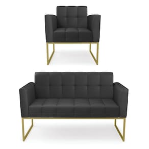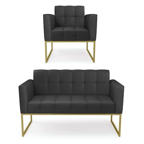 Você gosta de colecionar vários momentos memoráveis com sua família e amigos? Que tal recebê-los, com móveis de altíssima qualidade que só a DRossi tem? O Kit 01 Namoradeira e 01 Poltrona Elisa é adequado para você! Seu design retrô é a grande tendência do momento. Pode ser em diversos espaços da casa, em salas, hall de entrada, quartos, cozinhas, varanda, ada, escritório, dentre outros. Contém as seguintes características: A estrutura é feita de madeira de Eucalipto 100% de reflorestamento, e a Base Metálica Industrial Dourado, além de ser resistente e durável, suporta em média até 120 kg. Assento, encosto e braços, contém enchimento de espuma D-23 e é estofado em tecido Corino, que oferece muito conforto e resistência ao sentar, com aquela sensação de maciez e aconchego. Possui também, detalhes de costura no encosto e assento, resultando em um acabamento impecável, conferindo muito mais valor e elegância ao seu espaço. Para complementar a decoração com esse lindo kit, a dica é utilizar mantas, almofadas ou vasinho de flor. E pronto, seu cantinho estará perfeito para descansar e relaxar! Aqui, você encontra várias opções, para que seus amigos e familiares se sintam acolhidos. Garanta já seu kit.