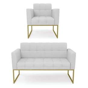Kit 1 Sofá Namoradeira E 1 Poltrona Elisa Linho Base Metálica Industrial Dourada - Cor A05 Cinza
