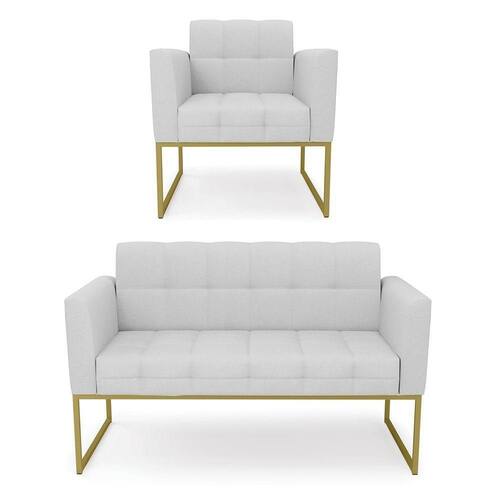 Kit 1 Sofá Namoradeira E 1 Poltrona Elisa Linho Base Metálica Industrial Dourada - D'rossi Cor A05 Cinza