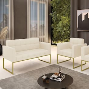 Você irá receber: 01 Sofá Namoradeira e 01 Poltrona - Entregue em: 02 Volumes