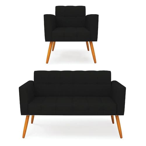 Você irá receber: 01 Sofá Namoradeira e 01 Poltrona - Entregue em: 02 Volumes