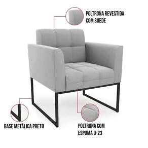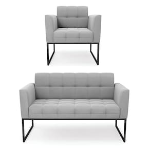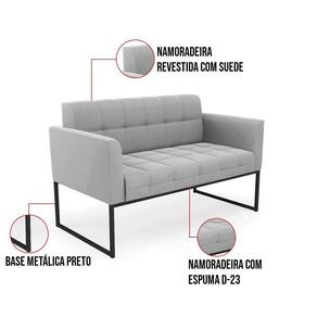 Kit 1 Sofá Namoradeira E 1 Poltrona Elisa Suede Base Metálica Industrial Preto - D'rossi Cor Cinza