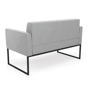 Kit 1 Sofá Namoradeira E 1 Poltrona Elisa Suede Base Metálica Industrial Preto - D`rossi Cor Cinza