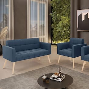 Você irá receber: 01 Sofá Namoradeira e 01 Poltrona - Entregue em: 02 Volumes