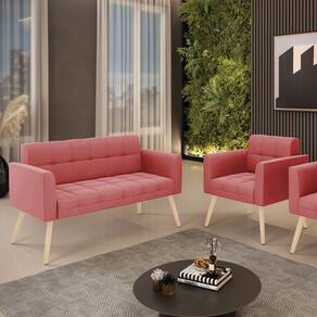 Você gosta de colecionar vários momentos memoráveis com sua família e amigos? Que tal recebê-los, com móveis de altíssima qualidade que só a DRossi tem? O Kit 01 Namoradeira e 01 Poltrona Elisa é adequado para você! Seu design retrô é a grande tendência do momento. Pode ser em diversos espaços da casa, em salas, hall de entrada, quartos, cozinhas, varanda, sacada, escritório, dentre outros. Contém as seguintes características: A estrutura é feita de madeira de Eucalipto 100% de reflorestamento, e os Pés Palito , além de serem resistentes e duráveis, suportam em média até 120 kg. Assento, encosto e braços, contém enchimento de espuma D-23 e é estofado em tecido Suede, no tom Rosê, que oferece muito conforto e resistência ao sentar, com aquela sensação de maciez e aconchego. Possui também, detalhes de costura no encosto e assento, resultando em um acabamento impecável, conferindo muito mais valor e elegância ao seu espaço. Para complementar a decoração com esse lindo kit, a dica é utilizar mantas, almofadas ou vasinho de flor. E pronto, seu cantinho estará perfeito para descansar e relaxar! Aqui, você encontra várias opções, para que seus amigos e familiares se sintam acolhidos. Garanta já seu kit.