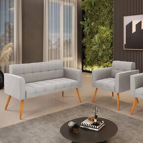 Kit 1 Sofá Namoradeira E 1 Poltrona Elisa Veludo Pés Palito Castanho - D'rossi Cor Cinza