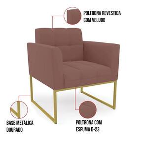 Você gosta de colecionar vários momentos memoráveis com sua família e amigos? Que tal recebê-los, com móveis de altíssima qualidade que só a DRossi tem? O Kit 01 Namoradeira e 01 Poltrona Elisa é adequado para você! Seu design retrô é a grande tendência do momento. Pode ser utilizado em diversos espaços da casa, em salas, hall de entrada, quartos, cozinhas, varanda, sacada, escritório, dentre outros. Contém as seguintes características: A estrutura é feita de madeira de Eucalipto 100% de reflorestamento, e a Base Metálica Industrial Dourado, além de ser resistente e durável, suporta em média até 120 kg. Assento, encosto e braços, contém enchimento de espuma D-23 e é estofado em tecido Veludo, no tom Rosê, que oferece muito conforto e resistência ao sentar, com aquela sensação de maciez e aconchego. Possui também, detalhes de costura no encosto e assento, resultando em um acabamento impecável, conferindo muito mais valor e elegância ao seu espaço. Para complementar a decoração com esse lindo kit, a dica é utilizar mantas, almofadas ou vasinho de flor. E pronto, seu cantinho estará perfeito para descansar e relaxar! Aqui, você encontra várias opções, para que seus amigos e familiares se sintam acolhidos. Garanta já seu kit.