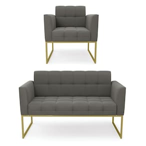 Kit 1 Sofá Namoradeira E 1 Poltrona Elisa Suede Base Metálica Industrial Dourado - D\\'rossi Cor Grafite