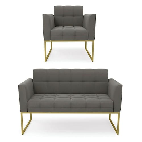 Kit 1 Sofá Namoradeira E 1 Poltrona Suede Base Metálica Industrial Dourado - D\`rossi Cor Grafite