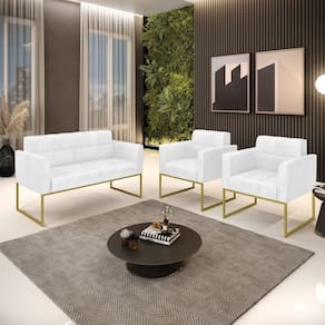 Você irá receber: 01 Sofá Namoradeira e 02 Poltronas - Entregue em: 03 Volumes