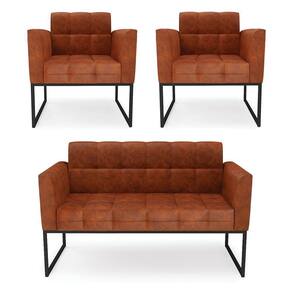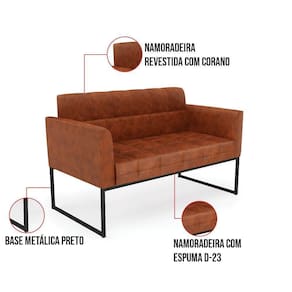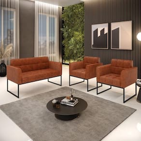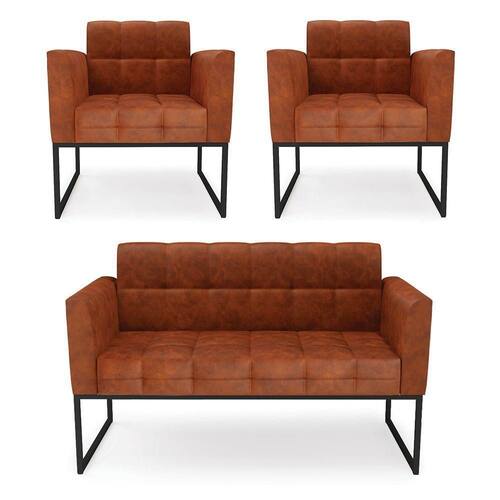 Kit 1 Sofá Namoradeira E 2 Poltronas Elisa Corano Base Metálica Industrial Preto - D'rossi Cor Nozes