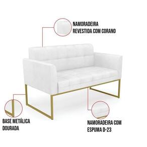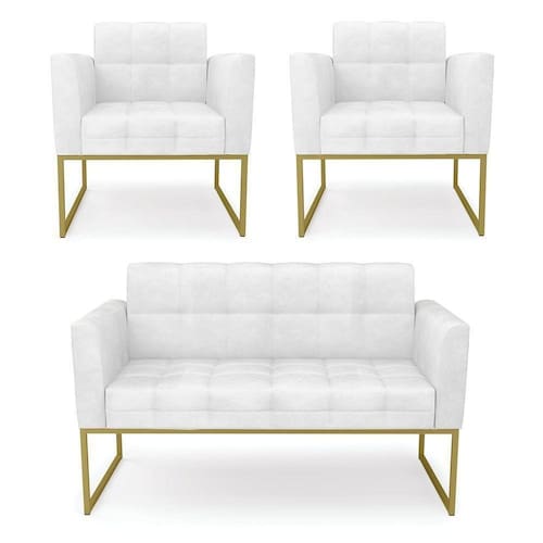 Kit 1 Sofá Namoradeira E 2 Poltronas Elisa Corano Branco Base Metálica Industrial Dourado - D'rossi
