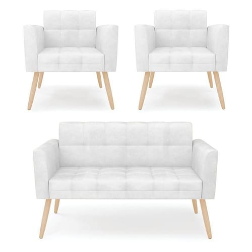 Kit 1 Sofá Namoradeira E 2 Poltronas Elisa Corano Pés Palito - D'rossi Cor Branco