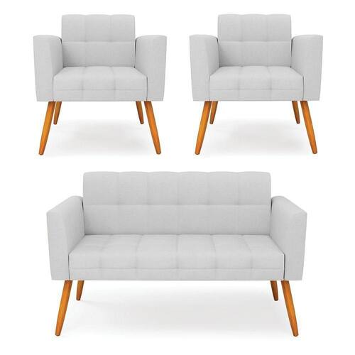 Você gosta de colecionar vários momentos memoráveis com sua família e amigos? Que tal recebê-los, com móveis de altíssima qualidade que só a DRossi tem? O Kit 01 Namoradeira e 02 Poltronas Elisa é adequado para você! Seu design retrô é a grande tendência do momento. Pode ser em diversos espaços da casa, em salas, hall de entrada, quartos, cozinhas, varanda, sacada, escritório, dentre outros. Contém as seguintes características: A estrutura é feita de madeira de Eucalipto 100% de reflorestamento, e os Pés Palito Castanho, além de serem resistentes e duráveis, suportam em média até 120 kg. Assento, encosto e braços, contém enchimento de espuma D-23 e é estofado em tecido Linho, no tom Cinza, que oferece muito conforto e resistência ao sentar, com aquela sensação de maciez e aconchego. Possui também, detalhes de costura no encosto e assento, resultando em um acabamento impecável, conferindo muito mais valor e elegância ao seu espaço. Para complementar a decoração com esse lindo kit, a dica é utilizar mantas, almofadas ou vasinho de flor. E pronto, seu cantinho estará perfeito para descansar e relaxar! Aqui, você encontra várias opções, para que seus amigos e familiares se sintam acolhidos. Garanta já seu kit.