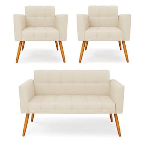 Você gosta de colecionar vários momentos memoráveis com sua família e amigos? Que tal recebê-los, com móveis de altíssima qualidade que só a DRossi tem? O Kit 01 Namoradeira e 02 Poltronas Elisa é adequado para você! Seu design retrô é a grande tendência do momento. Pode ser em diversos espaços da casa, em salas, hall de entrada, quartos, cozinhas, varanda, sacada, ecritório, dentre outros. Contém as seguintes características: A estrutura é feita de madeira de Eucalipto 100% de reflorestamento, e os Pés Palito Castanho, além de serem resistentes e duráveis, suportam em média até 120 kg. Assento, encosto e braços, contém enchimento de espuma D-23 e é estofado em tecido Linho, que oferece muito conforto e resistência ao sentar, com aquela sensação de maciez e aconchego. Possui também, detalhes de costura no encosto e assento, resultando em um acabamento impecável, conferindo muito mais valor e elegância ao seu espaço. Para complementar a decoração com esse lindo kit, a dica é utilizar mantas, almofadas ou vasinho de flor. E pronto, seu cantinho estará perfeito para descansar e relaxar! Aqui, você encontra várias opções, para que seus amigos e familiares se sintam acolhidos. Garanta já seu kit.