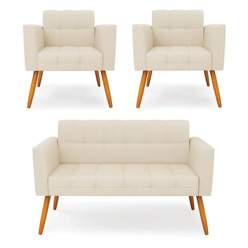 Você irá receber: 01 Sofá Namoradeira e 02 Poltronas - Entregue em: 02 Volumes