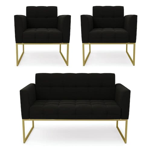 Você irá receber: 01 Sofá Namoradeira e 02 Poltronas - Entregue em: 03 Volumes