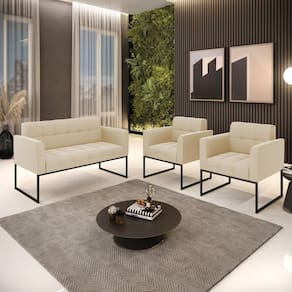 Você irá receber: 01 Sofá Namoradeira e 02 Poltronas - Entregue em: 03 Volumes
