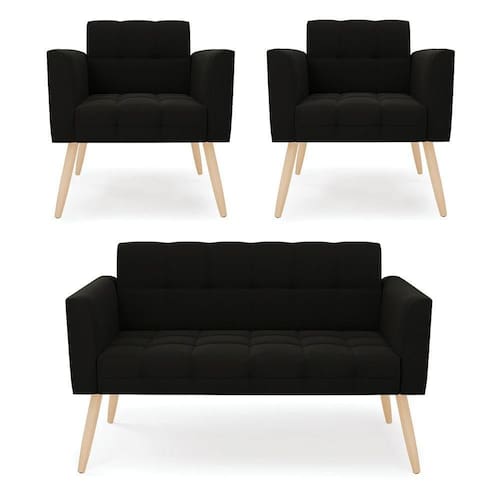 Você irá receber: 01 Sofá Namoradeira e 02 Poltronas - Entregue em: 02 Volumes