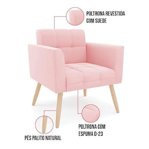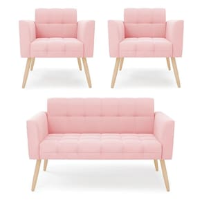 Kit 1 Sofá Namoradeira E 2 Poltronas Elisa Suede Pés Palito Natural - D`rossi Cor Rosa Bebê - Blush