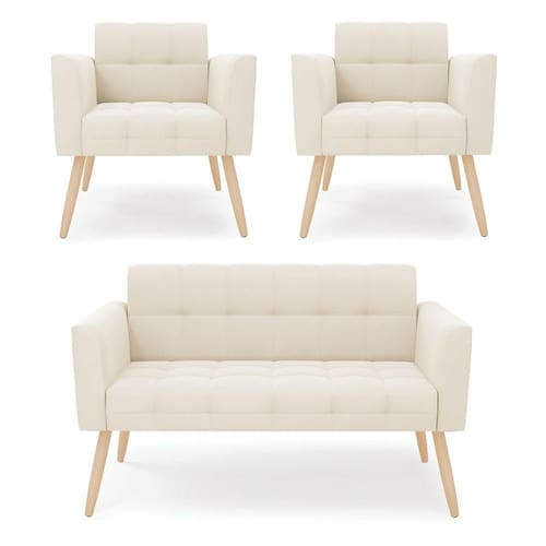 Você irá receber: 01 Sofá Namoradeira e 02 Poltronas - Entregue em: 02 Volumes