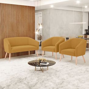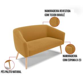 Kit 1 Sofá Namoradeira e 2 Poltronas Stella Bouclê Pés Palito Natural - D`Rossi - Mostarda