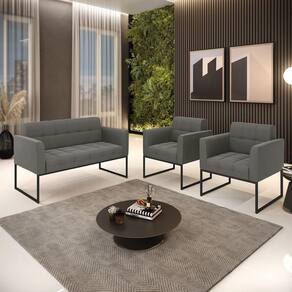 Você irá receber: 01 Sofá Namoradeira e 02 Poltronas - Entregue em: 03 Volumes