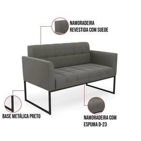 Você gosta de colecionar vários momentos memoráveis com sua família e amigos? Que tal recebê-los, com móveis de altíssima qualidade que só a DRossi tem? O Kit 01 Namoradeira e 02 Poltronas Elisa é adequado para você! Seu design retrô é a grande tendência do momento. Pode ser utilizado em diversos espaços da casa, em salas, hall de entrada, quartos, cozinhas, varanda, sacada, escritório, dentre outros. Contém as seguintes características: A estrutura é feita de madeira de Eucalipto 100% de reflorestamento, e a Base Industrial Metálica Preto, além de ser resistente e durável, suporta em média até 120 kg. Assento, encosto e braços, contém enchimento de espuma D-23 e é estofado em tecido Suede, que oferece muito conforto e resistência ao sentar, com aquela sensação de maciez e aconchego. Possui também, detalhes de costura no encosto e assento, resultando em um acabamento impecável, conferindo muito mais valor e elegância ao seu espaço. Para complementar a decoração com esse lindo kit, a dica é utilizar mantas, almofadas ou vasinho de flor. E pronto, seu cantinho estará perfeito para descansar e relaxar! Aqui, você encontra várias opções, para que seus amigos e familiares se sintam acolhidos. Garanta já seu kit.