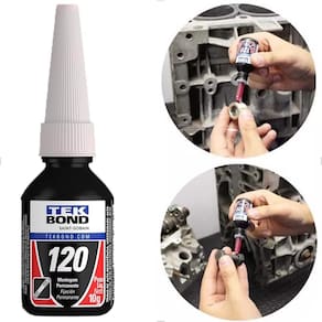É recomendado principalmente para travamento de roscas, parafusos, porcas e prisioneiros de médio e grande porte que necessitam de alta resistência à desmontagem. É um adesivo anaeróbico monocomponente, uma vez aplicado não escorre, evita a corrosão, impede vazamentos e o afrouxamento devido a vibrações do conjunto de fixação. Esse adesivo é alto torque pois é indicado para peças/superfícies que necessitam de alta resistência a desmontagens. Possui uma cura secagem inicial em 20 minutos e uma cura secagem total em 24 horas. Travamento de peças rosqueadas. Alto torque. Cor Vermelha. Viscosidade: 6000 a 8000 cP Temperatura de trabalho: - 60ºC a 150 ºC Preenchimento de folgas: 0,25mm Cura inicial: 20 minutos Cura total: 24 horas Torque de quebra: 25 a 45Nm Quantidade: 10 unidades Medidas A x L x C : 22 x 25 x 27cm Peso: 0,24kg Modelo: Anaeróbico 120 Marca: Tekbond SKU: 75181