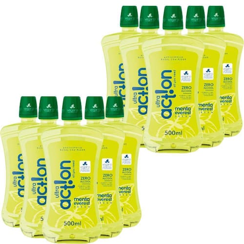 O Kit contém: 10 Antisséptico Bucal Ultra Action Menta Everest com 500ml cada.