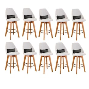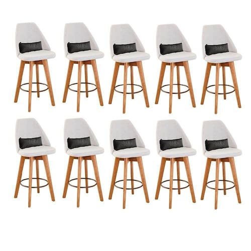 Kit 10 Banquetas Alta Maya Giratória Com Encosto Gourmet Linho Bege E Almofada Suede Cinza - Gat Magazine Banqueta Maya Giratória - GAT MAGAZINE A Banqueta Maya possui assento e pés em madeira eucalipto com sistema giratório! Os pés contam com um reforço que proporciona um suporte de peso de até 120 Kgs.O assento é revestido com espuma D-23. Além de bonita e charmosa, vai trazer para seu ambiente elegância e proporcionará conforto para sua família e amigos nos momentos de lazer.