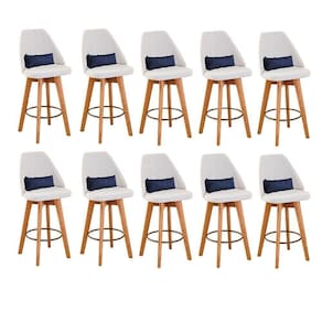 Kit 10 Banquetas Alta Maya Giratória Com Encosto Gourmet Linho Bege E Almofada Corino Azul Marinho - Gat Magazine