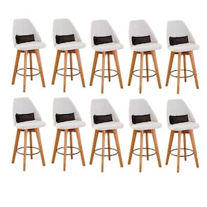 Kit 10 Banquetas Alta Maya Giratória Com Encosto Gourmet Linho Bege E Almofada Sintético Marrom - Gat Magazine Banqueta Maya Giratória - GAT MAGAZINE A Banqueta Maya possui assento e pés em madeira eucalipto com sistema giratório! Os pés contam com um reforço que proporciona um suporte de peso de até 120 Kgs.O assento é revestido com espuma D-23. Além de bonita e charmosa, vai trazer para seu ambiente elegância e proporcionará conforto para sua família e amigos nos momentos de lazer.