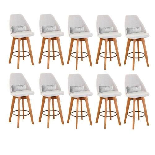 Kit 10 Banquetas Alta Maya Giratória Com Encosto Gourmet Linho Bege E Almofada Suede Branco - Gat Magazine Banqueta Maya Giratória - GAT MAGAZINE A Banqueta Maya possui assento e pés em madeira eucalipto com sistema giratório! Os pés contam com um reforço que proporciona um suporte de peso de até 120 assento é revestido com espuma D-23. Além de bonita e charmosa, vai trazer para seu ambiente elegância e proporcionará conforto para sua família e amigos nos momentos de lazer.