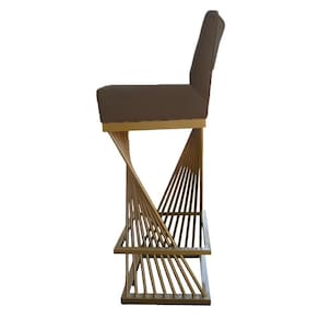 Contando com um design inovador nossa Banqueta possui um diferencial no desenho de sua Base de ferro, além de assento e encosto estofados.