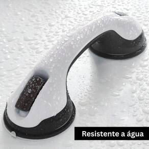 ? Suporte auxiliar e : Feito com plástico resistente de alta qualidade, o apoio conta com duas ventosas potentes, proporcionando maior estabilidade ao realizar movimentos dentro do banheiro. Indicado para uso junto com bancos ou cadeiras de banho, proporcionando apoio parcial e aumentando a sensação de durante o banho.
