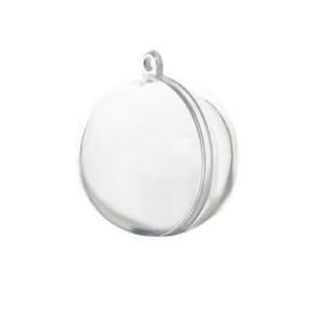 Bolinha de acrílico cristal com 6,5 cm com pequena argola para pendurar, ideal para colocar foto ou doces na árvore de natal.