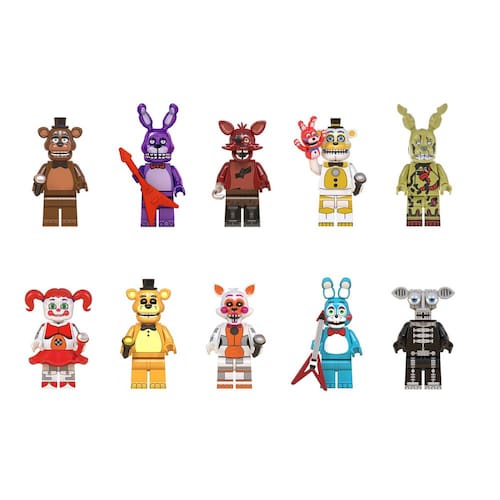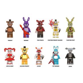 Game: Five Nights At Freddy's FNAF Miniatura em blocos de montar compatível Inclui bases Composição /Material: PVC Altura aproximada do produto: 4cm Embalagem: Plástico opp lacrado Idade recomendada: +6