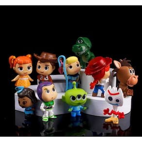 O kit inclui 09 miniaturas Filme: Toy Story Material: PVC Altura aproximada do produto: 8cm (altura) X 6cm (largura) Embalagem: Plástico opp Figuras não articuladas Idade recomendada: +6