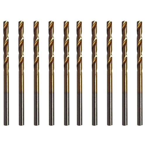 Kit com 10 Brocas 2.4mm Aço Rápido HSS Titânio para Micro Mini Retíficas Dremax