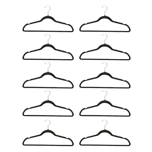 Kit 10 cabides aveludados grande preto 45 cm não escorrega cb-729pt western Ficha tecnica Jogo 10 cabides preto 45cm - dimensões da peça: 45 x 1 x 23cm - dimensões da embalagem: 45 x 1,2 x 23cm - material: plástico abs , ferro e veludo. - cor: preto - tipo de embalagem: cinta - marca: western home - origem: china - contém: 10 unidades - características: Com acabamento aveludado, evita que as peças escorreguem. - indicação: Para acondicionar qualquer tipo de roupa sendo camisetas, blusas com alças, vestidos e calças. - dicas de uso: Mantenha os cabides alinhados na mesma direção, pois além de economizar espaço, vai deixar o ambiente com um visual organizado. - cuidados: Limpar com pano levemente umedecido com água, seguido de pano seco. Guarde estas instruções para futuras consultas. Manter fora do alcance das crianças.