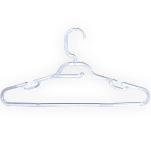Garantia: 90 dias / Peso total: 0,660kg / Cor predominante: cristal / Ref: 7798138603721; Dimensões de cada cabide: 40cm (C) x 0,5cm (L) x 21,5cm (A); Material: poliestireno; Conteúdo: 10 cabides de roupas; Cuidados: não lavar com materiais abrasivos.