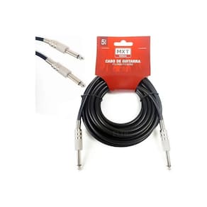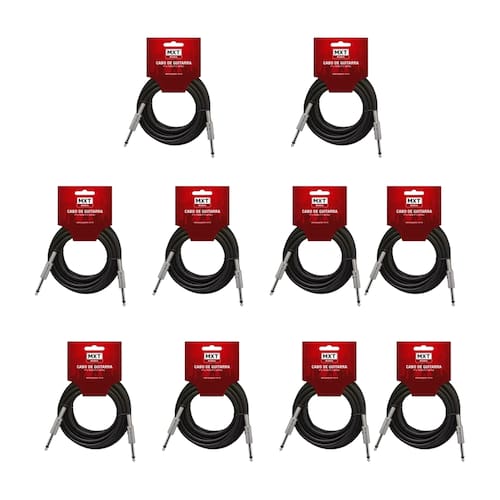 KIT 10 Cabo Guitarra P10/P10 5 Metros MXT O Cabo de Guitarra MXT P10/P10 – 5 Metros é a escolha ideal para músicos que buscam confiabilidade e qualidade sonora em suas performances. Com construção robusta, sua estrutura flexível em PVC oferece resistência ao desgaste e manuseio constante. Os conectores P10 mono metálicos garantem contato firme e redução de ruídos, tornando este cabo compatível com guitarras, baixos, violões, teclados, pedais, amplificadores e mesas de som. Perfeito tanto para ambientes de estúdio quanto apresentações ao vivo.
