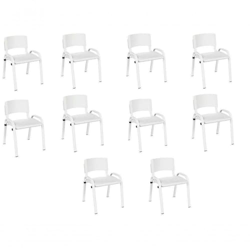 Kit 10 Cadeira Iso Infantil Creche, Escola Base Branco Branco