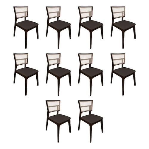 Kit 10 Cadeiras de Jantar Manuela em Tela Assento Veludo Marrom Base em Madeira Maciça - Castanho