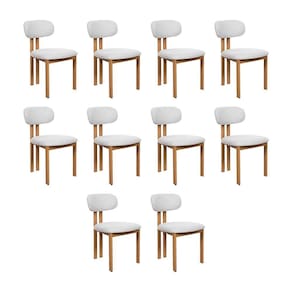 AS IMAGENS SÃO MERAMENTE ILUSTRATIVAS E PODEM SOFRER VARIAÇÕES DE COR E PEQUENOS DETALHES DE ACORDO COM O SEU MONITOR, ILUMINAÇÃO DO AMBIENTE E ATÉ MESMO A SUA PERCEPÇÃO 10 Cadeiras de Jantar Tulipa Estrutura AÃo Carbono Laminado Natural com Estofado Linho Cru
