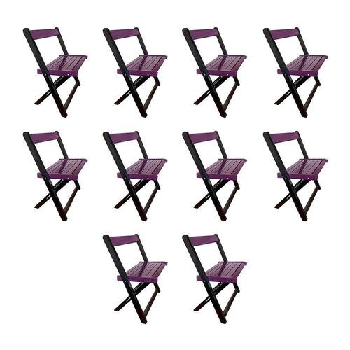 AS IMAGENS SÃO MERAMENTE ILUSTRATIVAS E PODEM SOFRER VARIAÇÕES DE COR E PEQUENOS DETALHES DE ACORDO COM O SEU MONITOR, ILUMINAÇÃO DO AMBIENTE E ATÉ MESMO A SUA PERCEPÇÃO VISUAL.Kit 10 Cadeiras de Madeira DobrÃvel Roxo
