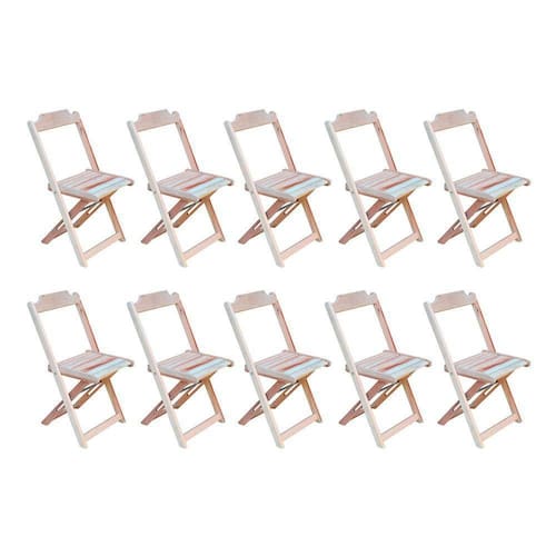 Kit 10 Cadeiras De Madeira Dobravel Sem Pintura/crua - Cor: Marrom