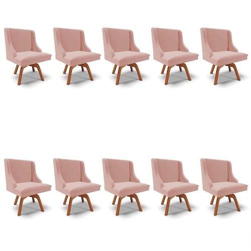 Se você não abre mão de beleza e qualidade, nós temos exatamente o que você precisa, confira o Kit 10 Cadeiras Estofadas Base Giratória de Madeira Lia Veludo Rosê da Ibiza e transforme a decoração da sua Sala de Jantar!